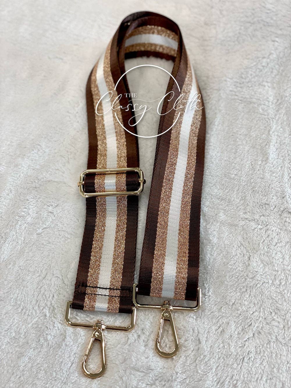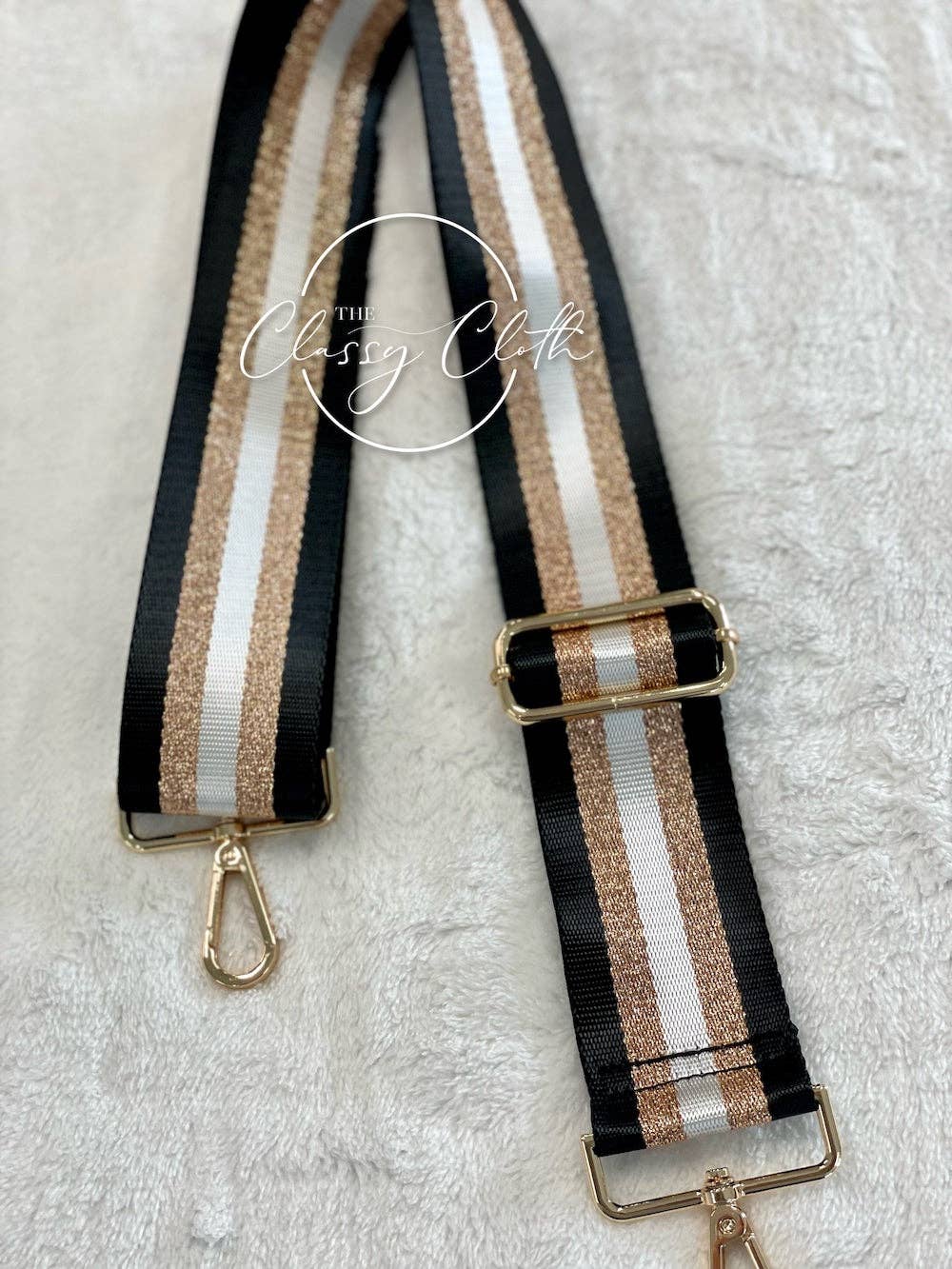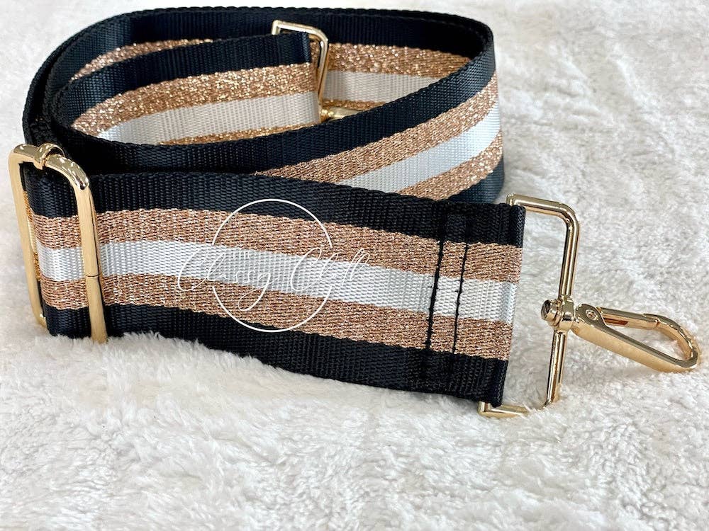 Crossbody Guitar Strap - Black Gold Vertical Stripe