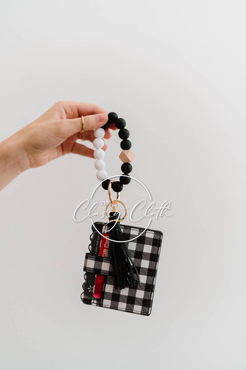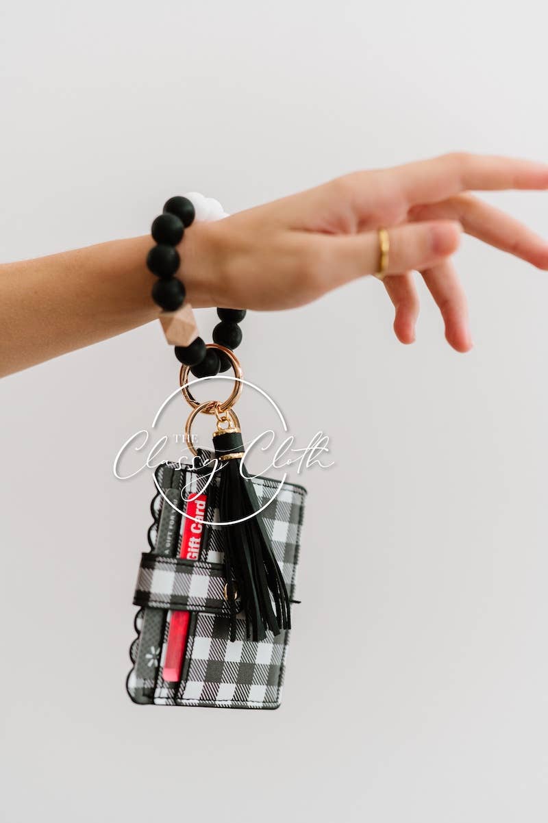 Wristlet Keychain Wallet - Black Buffalo Plaid