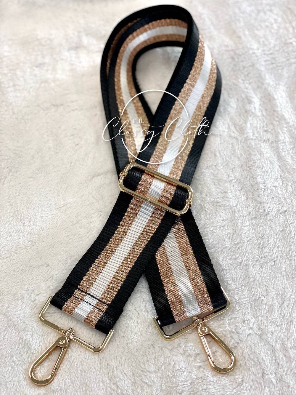 Crossbody Guitar Strap - Black Gold Vertical Stripe
