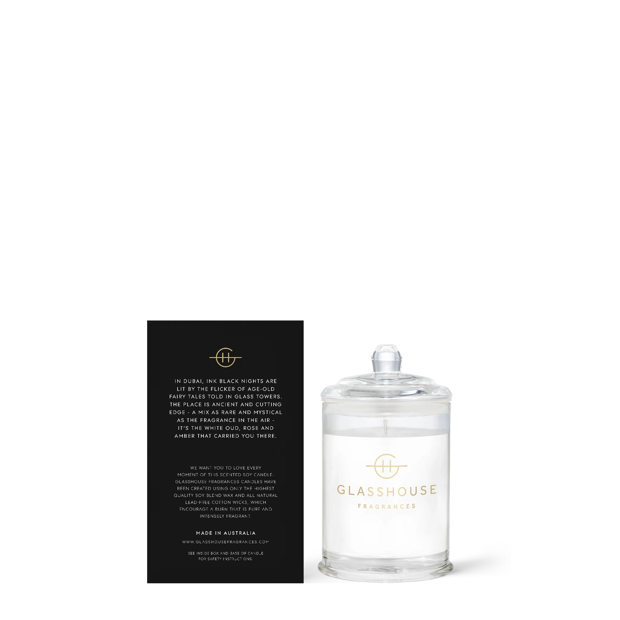 In Dubai, ink black nights are lit by the flicker of age-old fairy tales told in stark glass towers The place is ancient and cutting edge - a mix as rare and mystical as the fragrance in the air - it's the White Oud, Rose and Amber that carried you there.