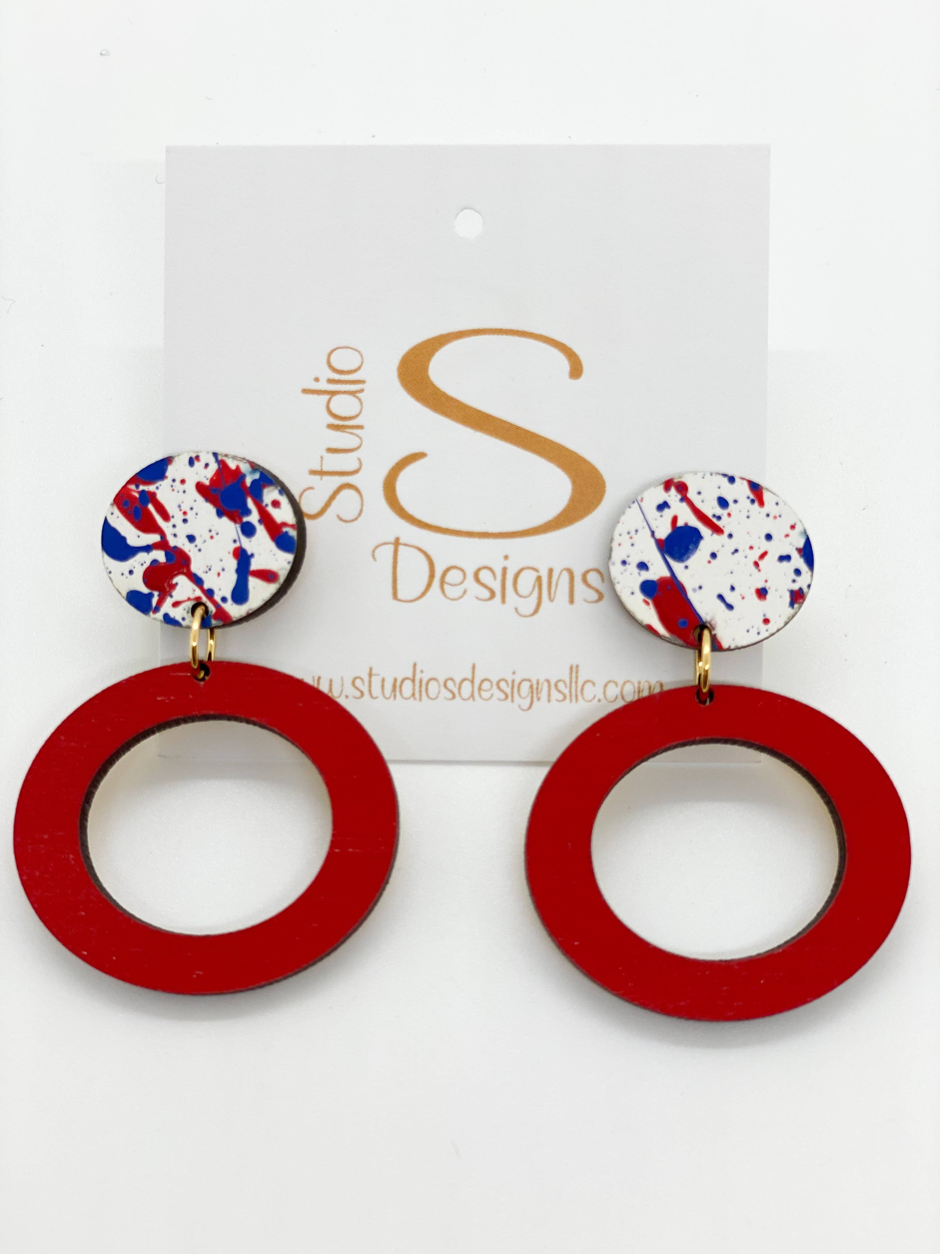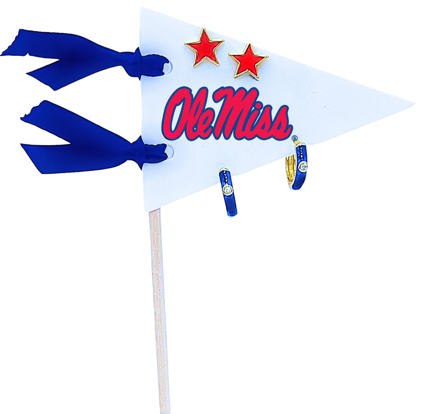 BeJeweled Hoops- 1 1/4" Ole Miss Navy with Red Stones