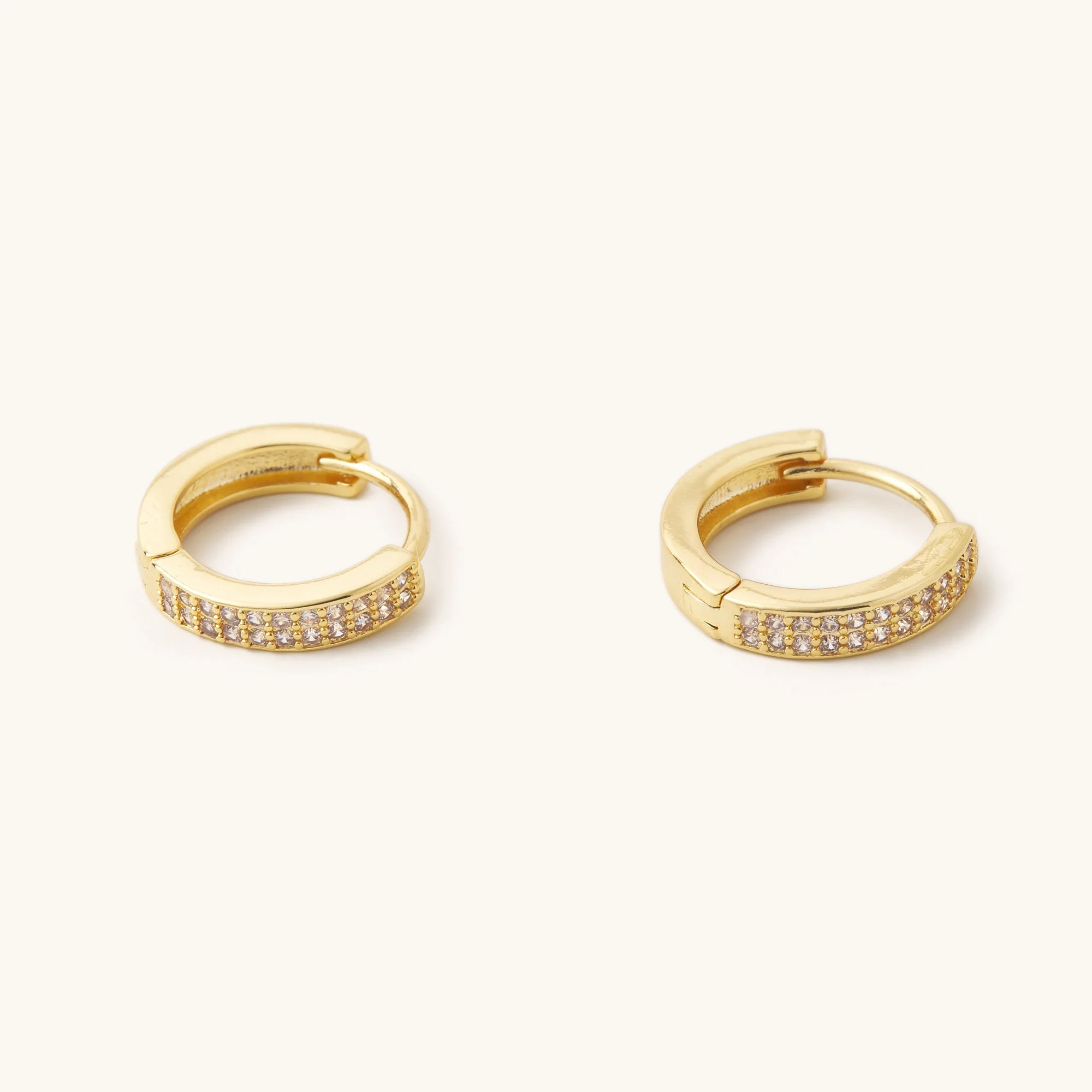Our huggie hoop earrings are the perfect versatile pair with just enough sparkle to add to your everyday look- you'll never want to take them off!