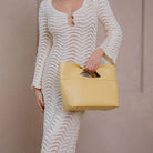 Elevate your style with our Jillian tote bag. Its smooth exterior complements the sleek design, and the removable zip pouch keeps your items secure. Use it as a crossbody with the adjustable strap or detach it for a classic tote look. Magnetic snaps inside keep the pouch in place.