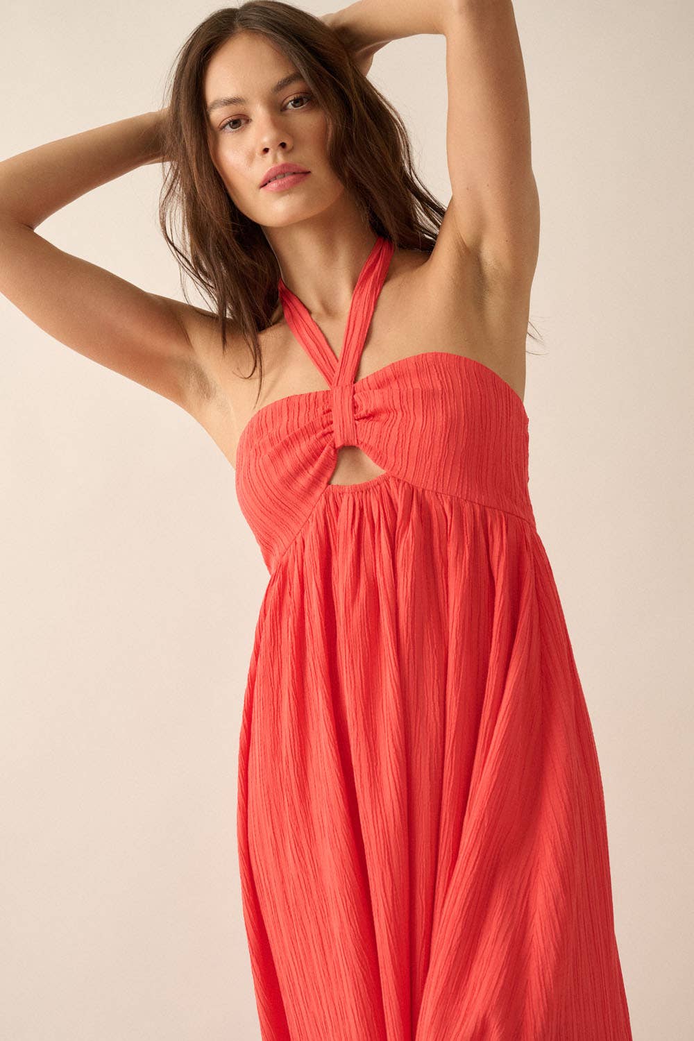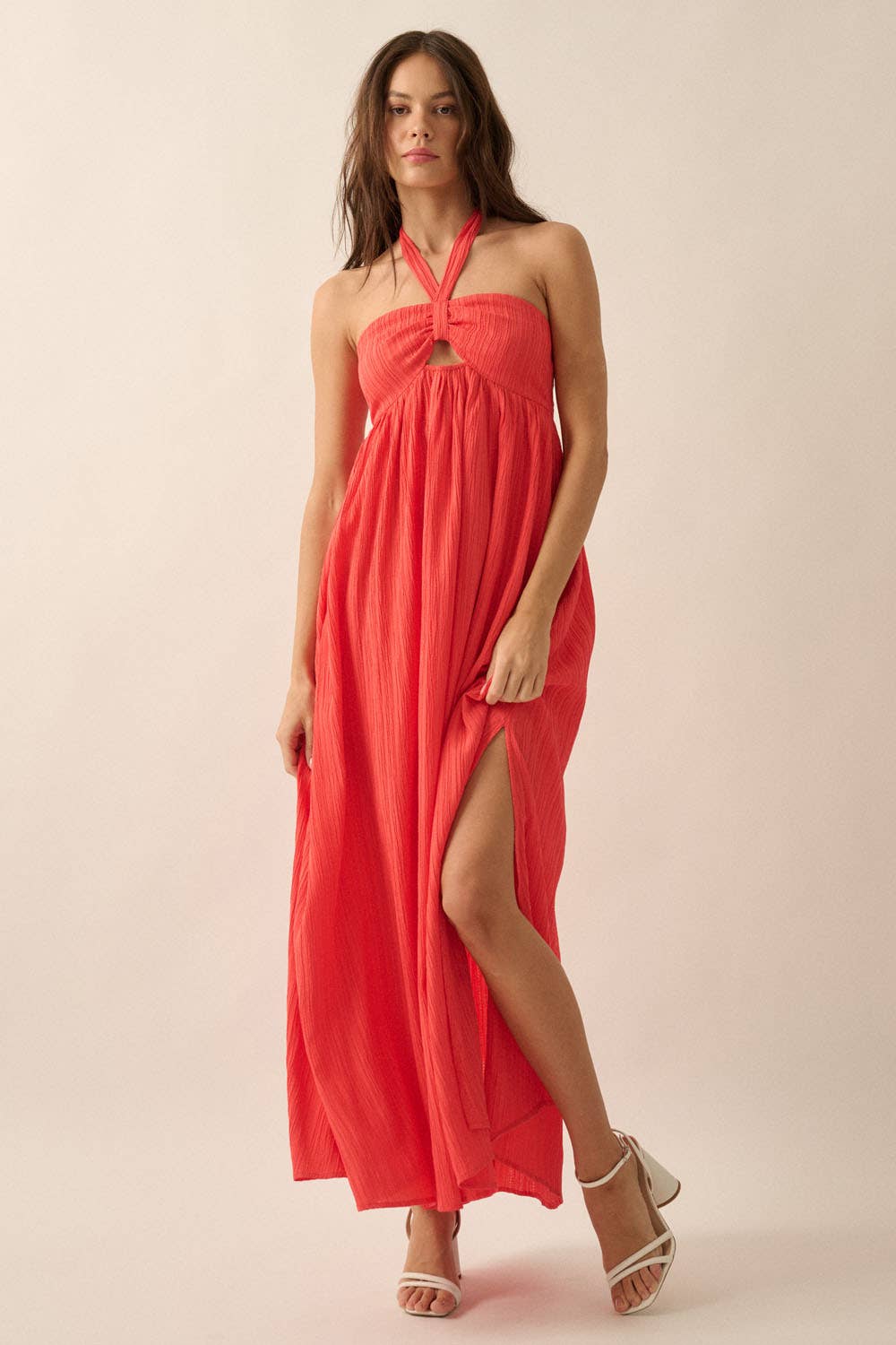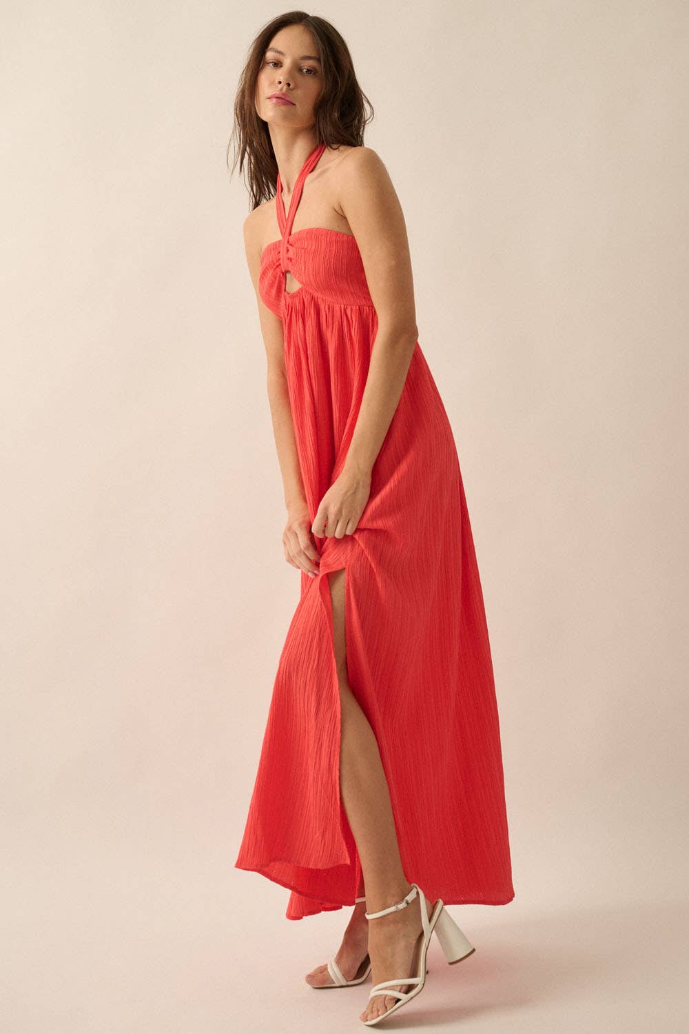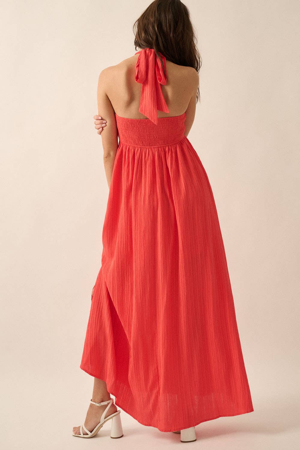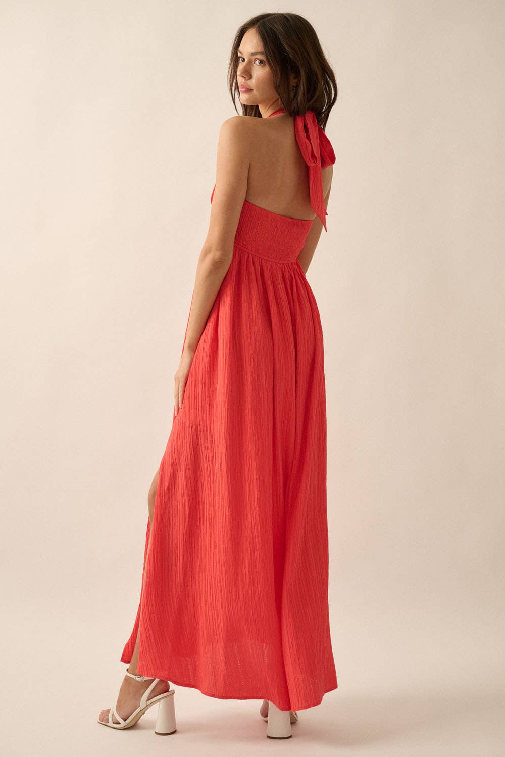 Callie Shirred Maxi Halter Dress