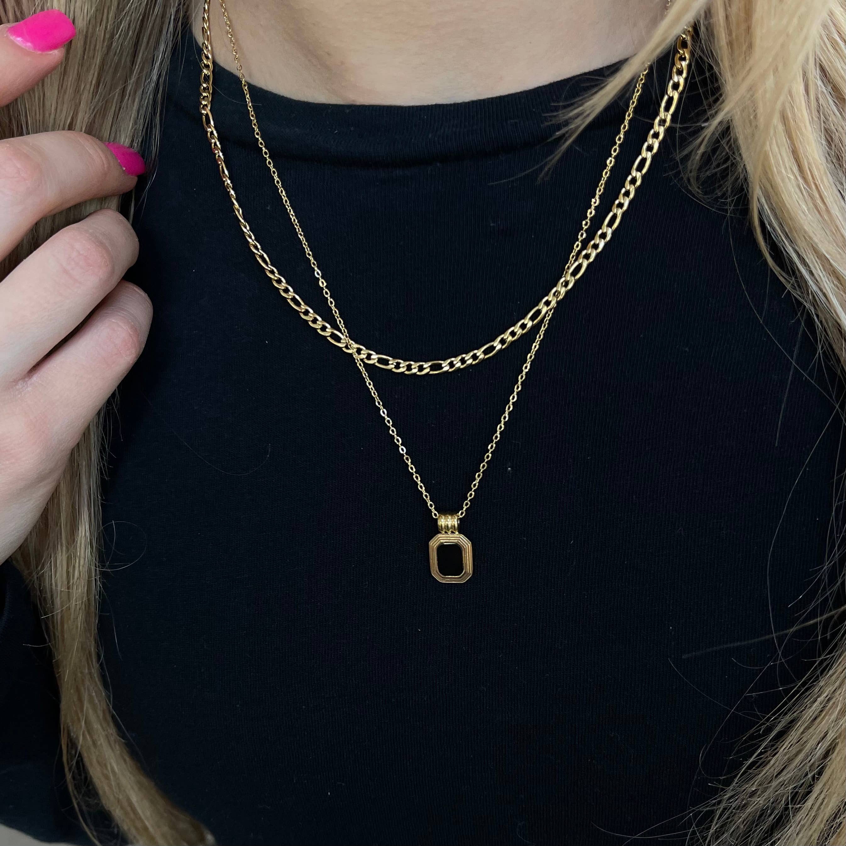 Black Onyx Double Chain Necklace