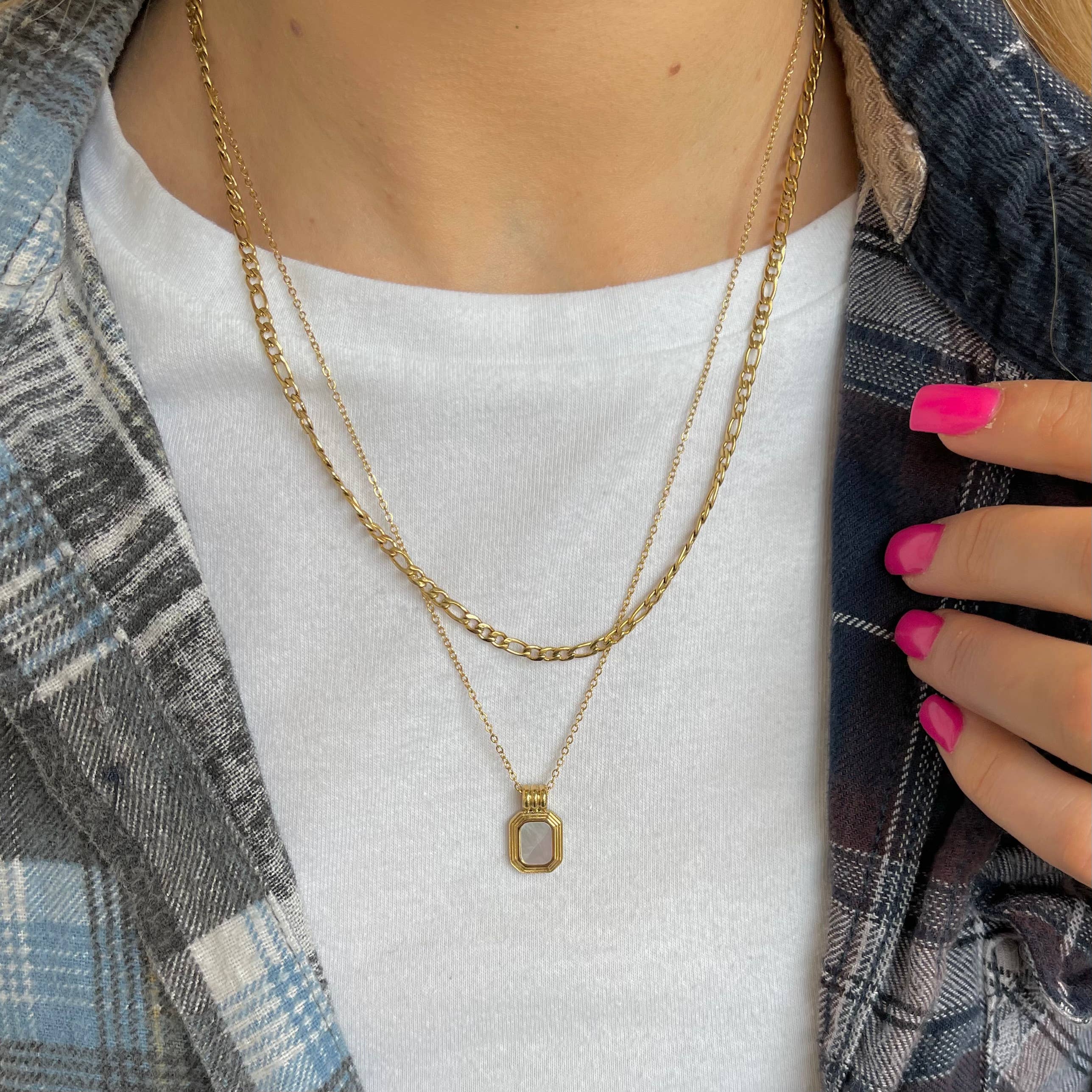 White Shell Double Chain Necklace