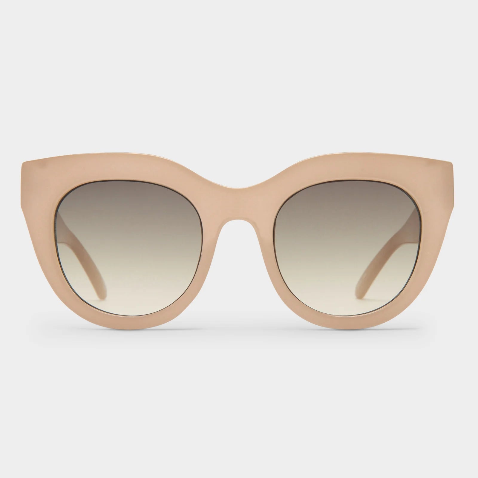 A favourite of Meghan Markle and Olivia Palermo, the AIR HEART silhouette is an iconic Le Specs style. With oversized and dramatic proportions reminiscent of a cat eye, the style is designed with a thick semi-translucent tan frame and luxurious metal top bar inlay, then fitted with premium zero base smoke flat lenses. The perfect statement sunglass to suit all face shapes.