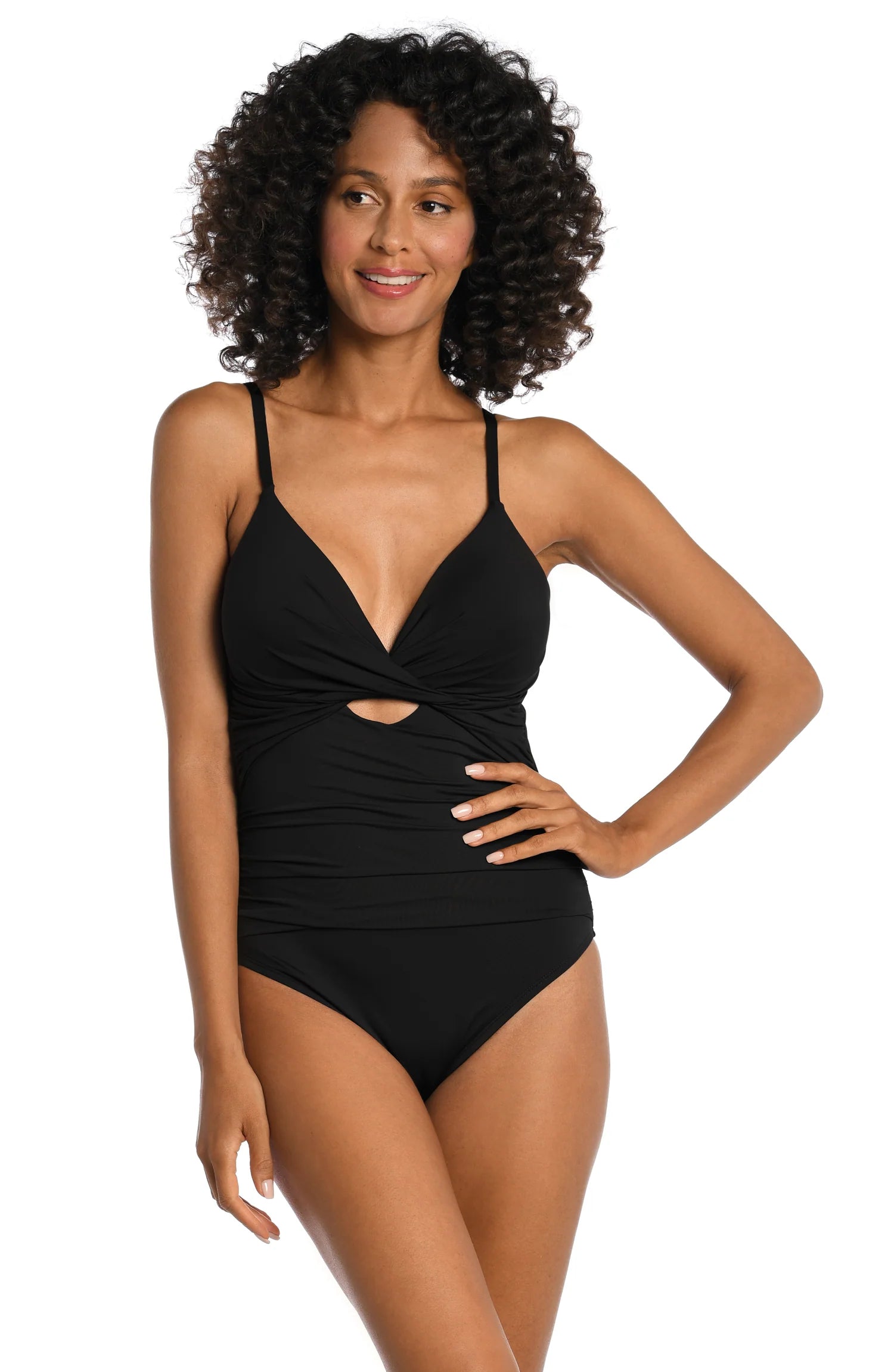 Island Goddess Twist Keyhole One Piece - Black