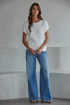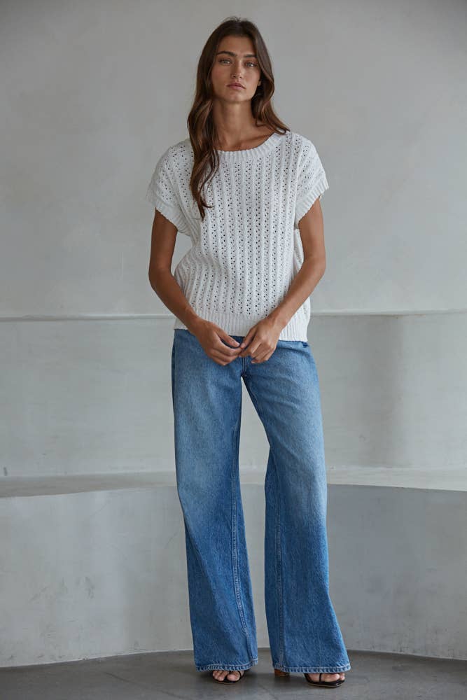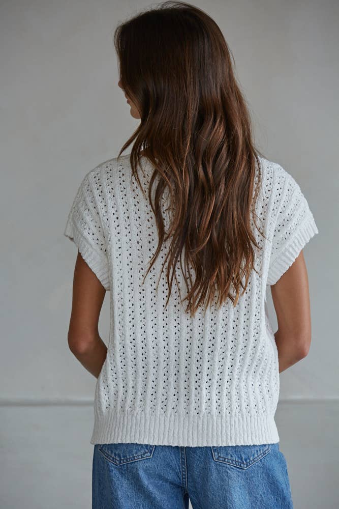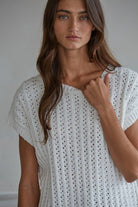 Knit Sweater Cotton Crochet Round Neck Short Sleeve Pullover Top