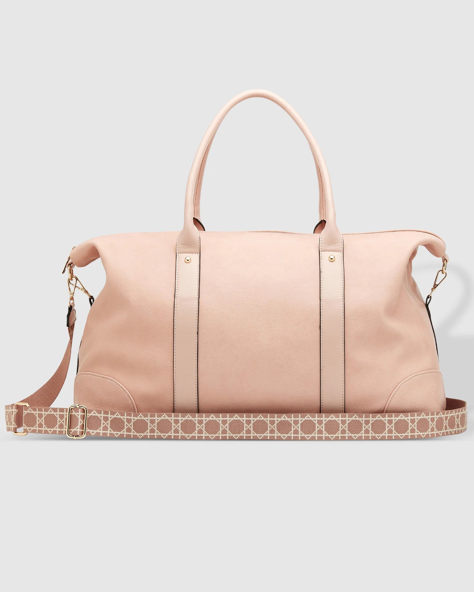 The Louenhide Alexis Ezra Strap Weekender Travel Bag is a perfect carryall for overnight or weekend adventures! Feel luxe and invest in a quality, soft, and easy clean vegan leather travel bag. This new design is a luxe twist on a Louenhide best seller, now featuring a patterned webbing extension strap. Wide opening and spacious, this casual weekender bag is just the right size to fit your travel essentials. Carry the bag effortlessly by the top handles, or wear on your shoulder with the detachable extension strap, for added comfort. Now comes with a handy back zip pocket to quickly access keys or other valuables.