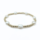 14k gold filled and waterproof beaded bracelet with beautiful, fresh-water baroque pearls all around. Every pearl is slightly different. Wear single or stack it. Part of our erin gray waterproof collection. Available in 6.5" and 7" stretch