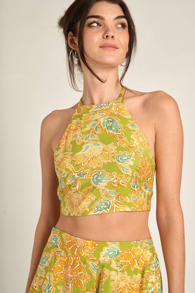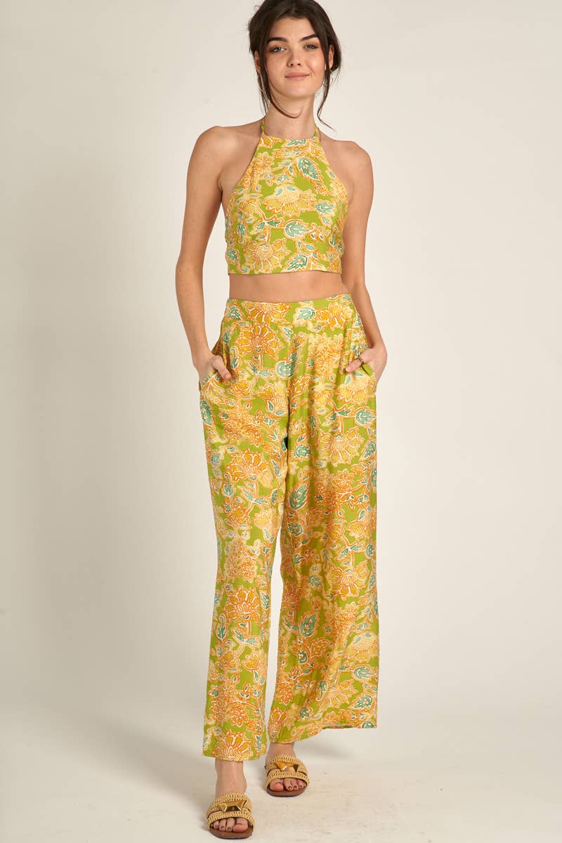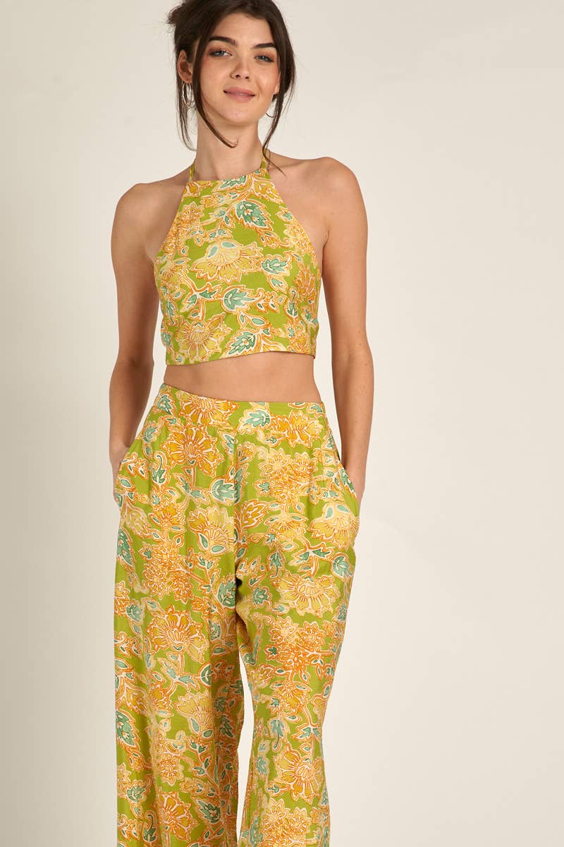 Halter Neck Crop Top and Pants Set