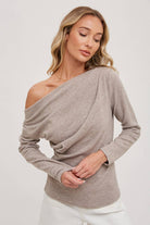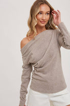 Introducing a chic one-shoulder knit top with a pleated front, seamlessly combining style and elegance. This unique top features a sophisticated one-shoulder design, adding a modern touch to your ensemble. The pleated front detail not only enhances visual appeal but also creates a dynamic texture, adding depth to your look.