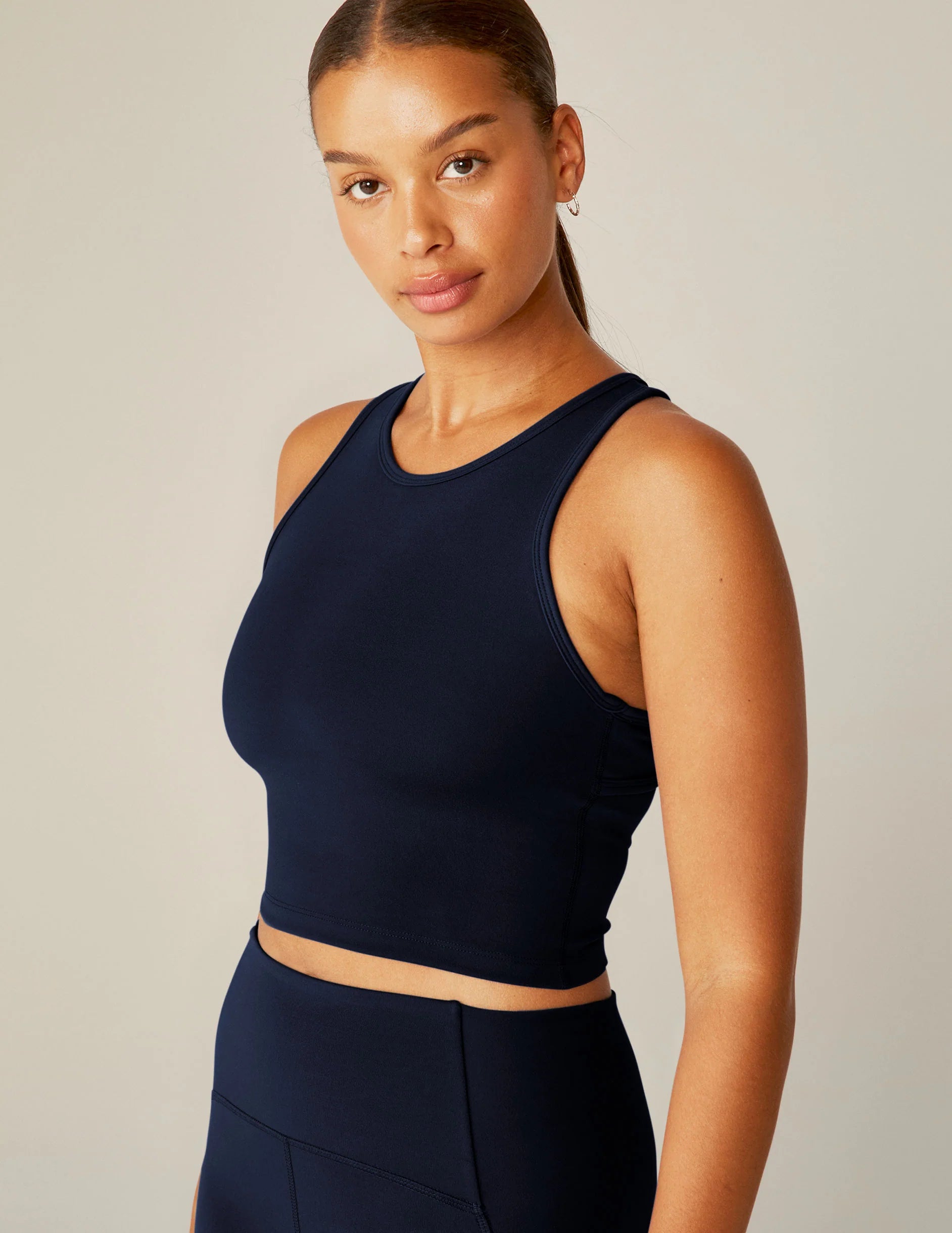 Chase your all. Our new cropped tank offers enhanced support thanks to powermesh layers on built-in shelf bra, as well as inside wide shoulder straps for non-restrictive comfort. Flattering, functional, and up for the workout with racerback design. Made of our POWERBEYOND™ sport fabric that meets you at your most ambitious.