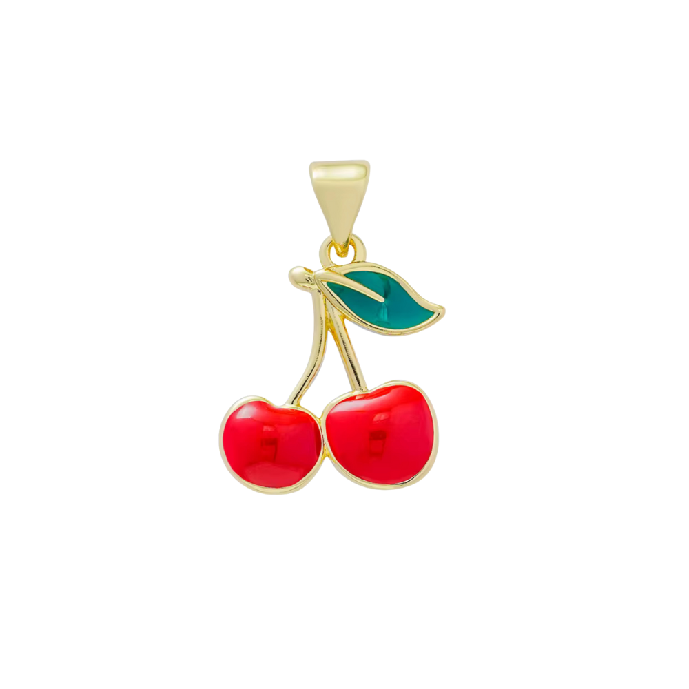 * Enamel Accents: Glossy red cherries with a green enamel leaf for a fresh and colorful touch.